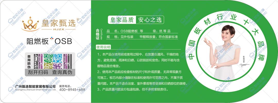皇家甄選阻燃板防偽標